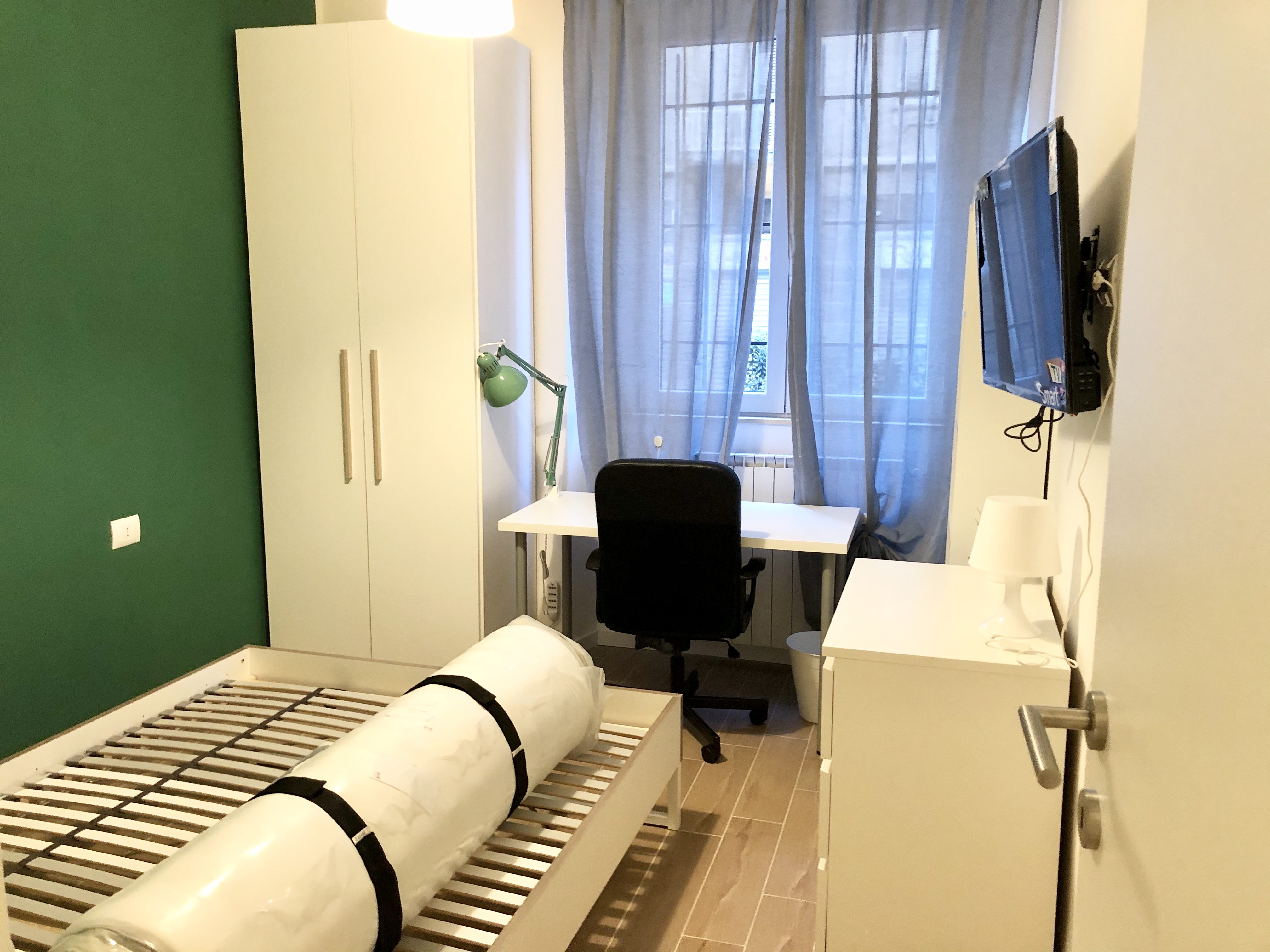 L’appartamento si trova in uno stabile signorile al piano terra nel quartiere Cenisia, ed è composto da 4 stanze singole completamente arredate, 2 bagni, lavanderia e zona living con cucina completamente accessoriata con divano e assistente vocale.